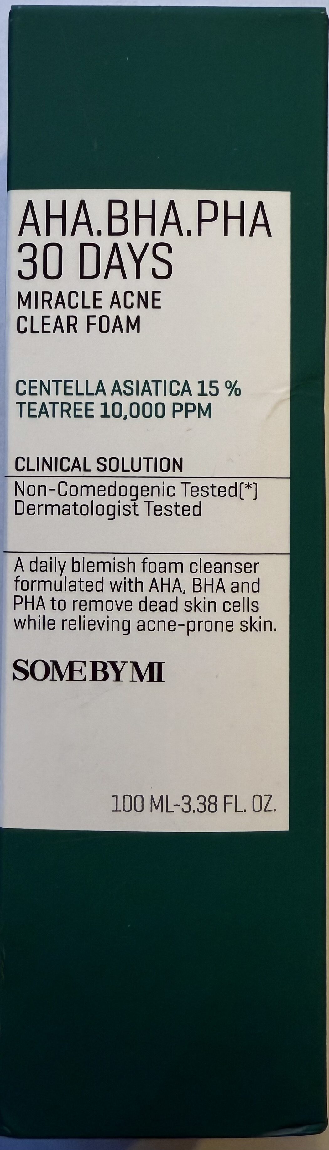 Der SOME BY MI AHA-BHA-PHA Miracle Acne Clear Foam ist ein Reinigungsschaum, der speziell für Menschen mit unreiner Haut entwickelt wurde. Er enthält die Wirkstoffe AHA, BHA und PHA, die dabei helfen, überschüssiges Öl zu regulieren, abgestorbene Hautzellen zu entfernen und verstopfte Poren zu reinigen. Das Ergebnis ist eine klarere und strahlendere Haut. Zusätzlich beruhigen Inhaltsstoffe wie Teebaumblattwasser und Centella Asiatica-Extrakt die Haut und mindern Irritationen, ohne sie auszutrocknen.