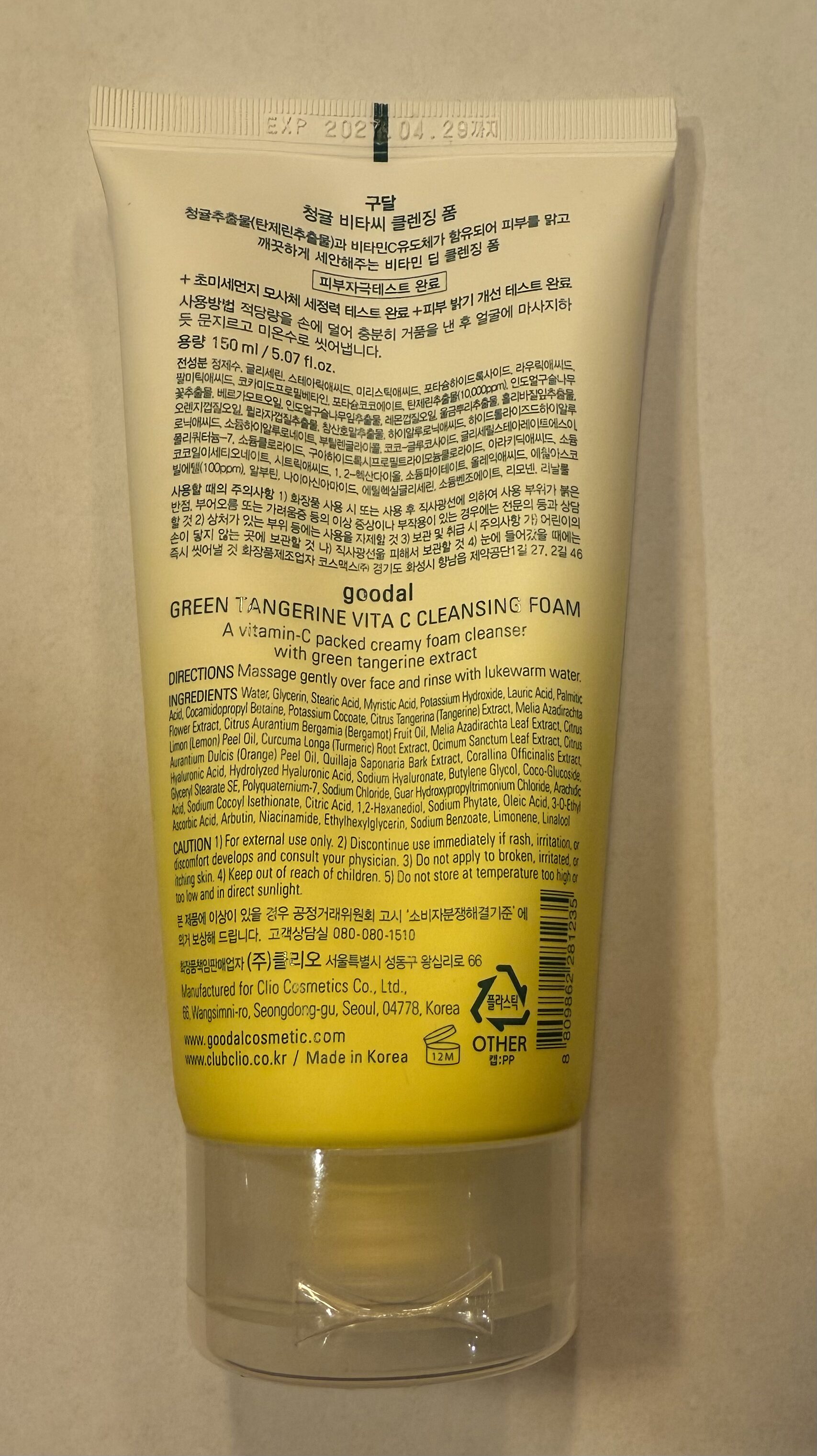 | Inhaltsstoffe | Water, Glycerin, Stearic Acid,Myristic Acid, Potassium Hydroxide, Lauric Acid, Palmitic Acid, Cocamidopropyl Betaine, Potassium Cocoate, Citrus Tangerina (Tangerine) Extract, Melia Azadirachta Flower Extract,Citrus Aurantium Bergamia (Bergamot) Fruit Oil, Melia Azadirachta Leaf Extract, Citrus Limon (Lemon) Peel Oil, Curcuma Longa (Turmeric) Root Extract, Ocimum Sanctum Leaf Extract, Citrus Aurantium Dulcis (Orange) Peel Oil, Quillaja Saponaria Bark Extract, Corallina Officinalis Extract, Hyaluronic Acid, Hydrolyzed Hyaluronic Acid, Sodium Hyaluronate, Butylene Glycol, Coco-Glucoside, Glyceryl Stearate SE, Polyquaternium-7, Sodium Chloride, Guar Hydroxypropyltrimonium Chloride, Arachidic Acid, Sodium Cocoyl Isethionate, Citric Acid, 1,2-Hexanediol, Sodium Phytate, Oleic Acid, 3-O-Ethyl Ascorbic Acid, Arbutin, Niacinamide, Ethylhexylglycerin, Sodium Benzoate, Limonene, Linalool |
